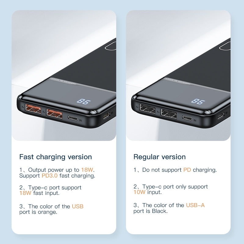 Feature 2: portable charging, pover bank, power bank 10000mAh, mini power bank