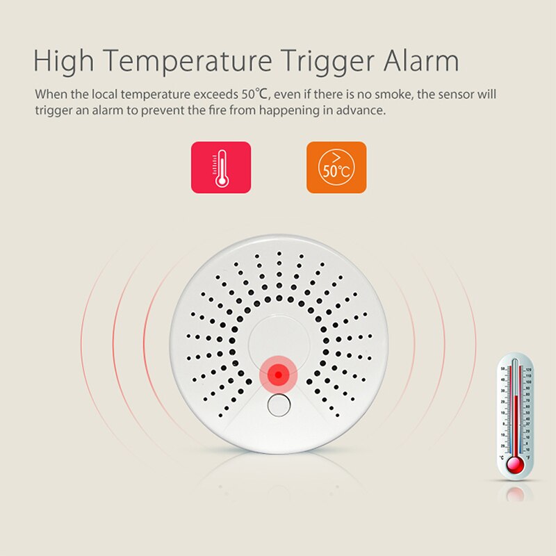 Smart Life standalone WiFi Smoke Sensor With Temperature Detector Sensor Alarm System Wireless Smoke Detector IFTTT